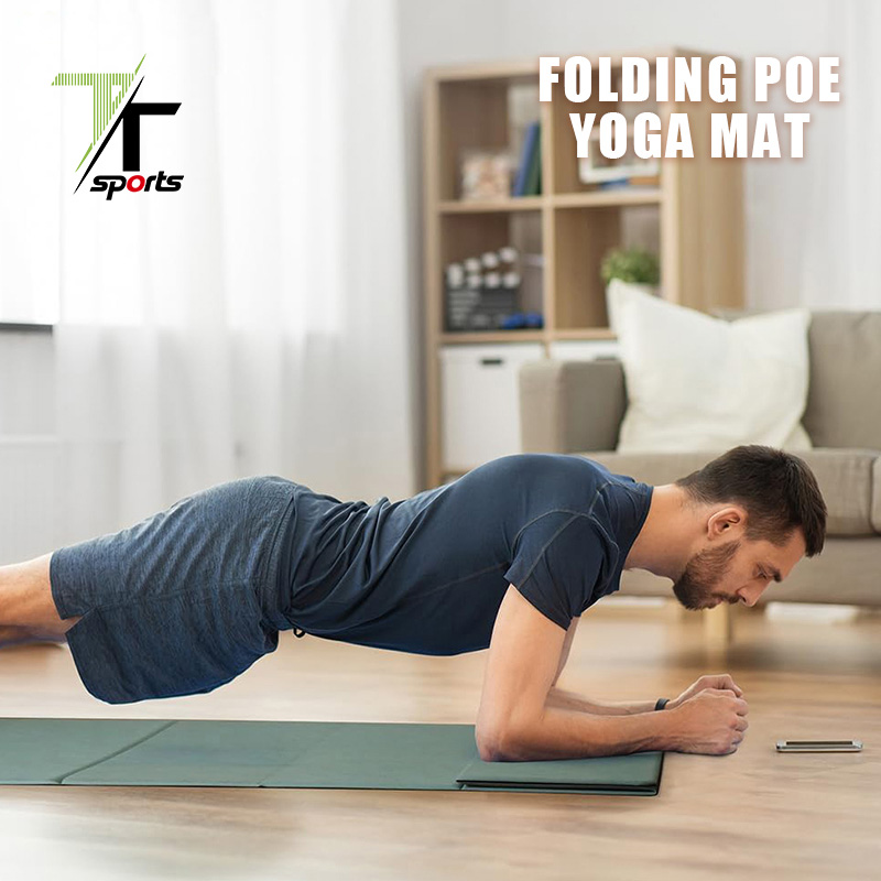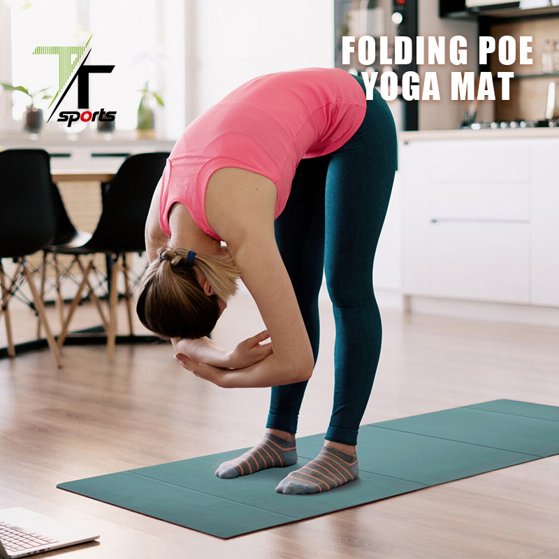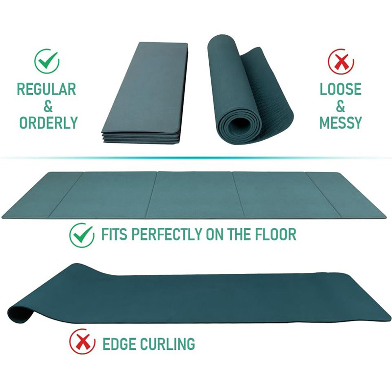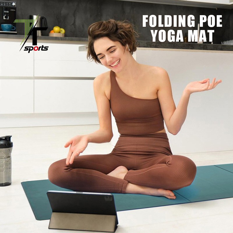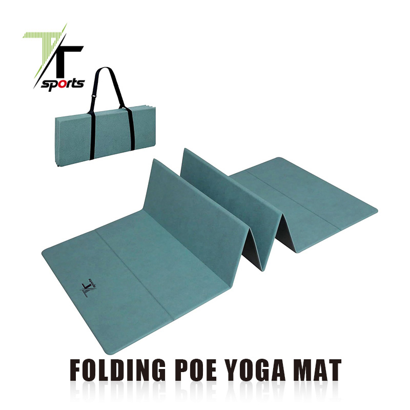 Tapete de ioga dobrável em camurça respirável, revestido em couro, com 8 dobras.