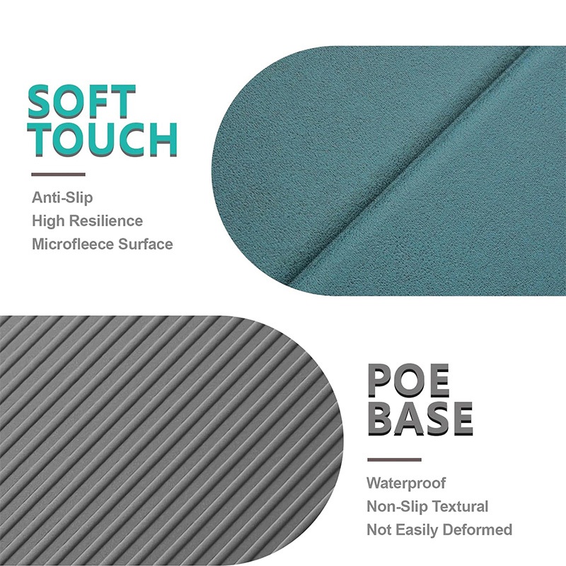 Confeccionado em material POE e tecido tecnológico de couro sintético, o tapete oferece um equilíbrio entre amortecimento e estabilidade, adequado para diversas posturas de ioga.